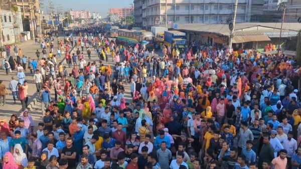 *** গাজীপুরে টানা তৃতীয় দিনেও শ্রমিকদের মহাসড়ক অবরোধ, ভোগান্তি চরমে ***